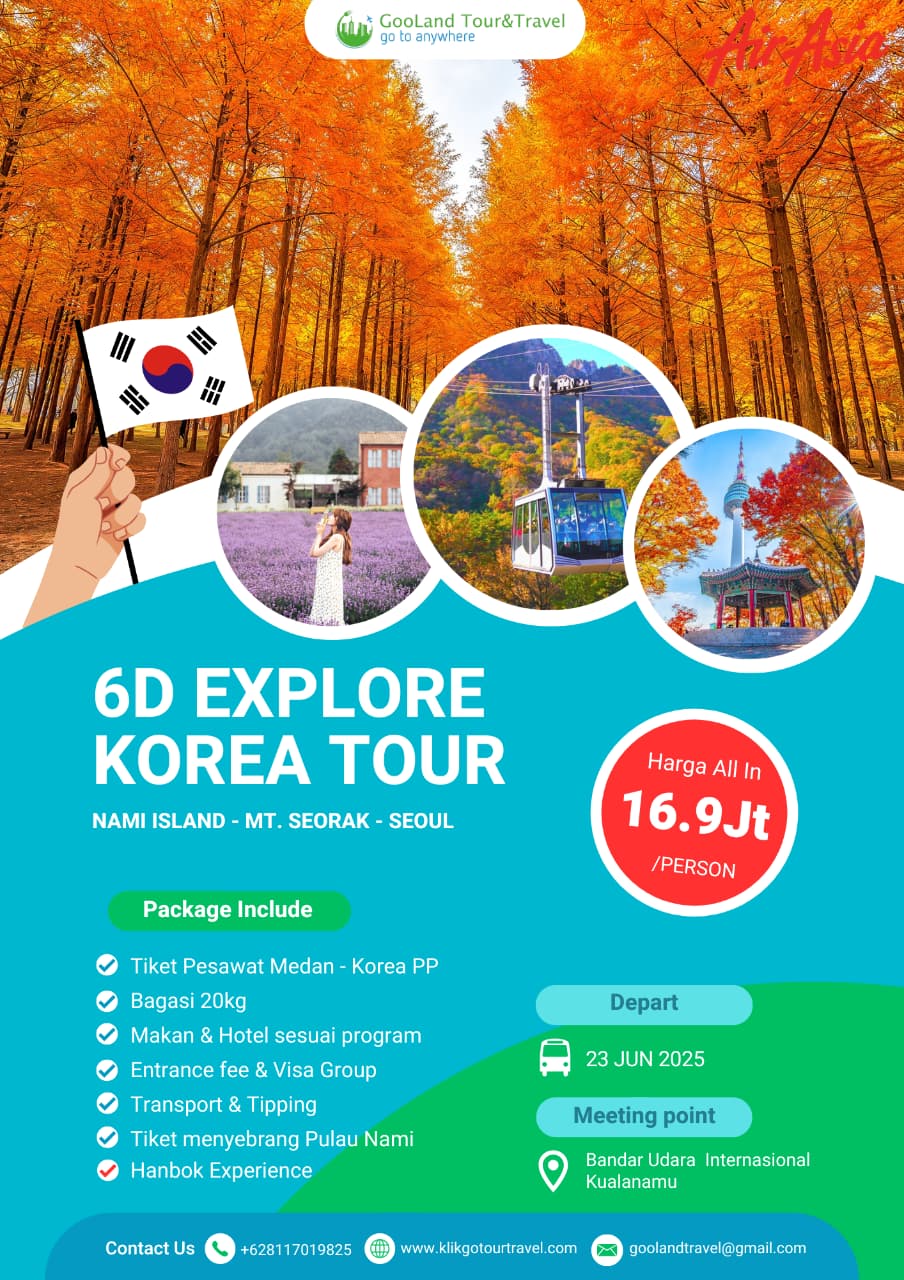 Jelajahi destinasi wisata populer di berbagai negara dengan paket tour internasional dari Gooland Tour & Travel. Kami menyediakan perjalanan yang nyaman dan berkualitas ke Asia, hingga Eropa.