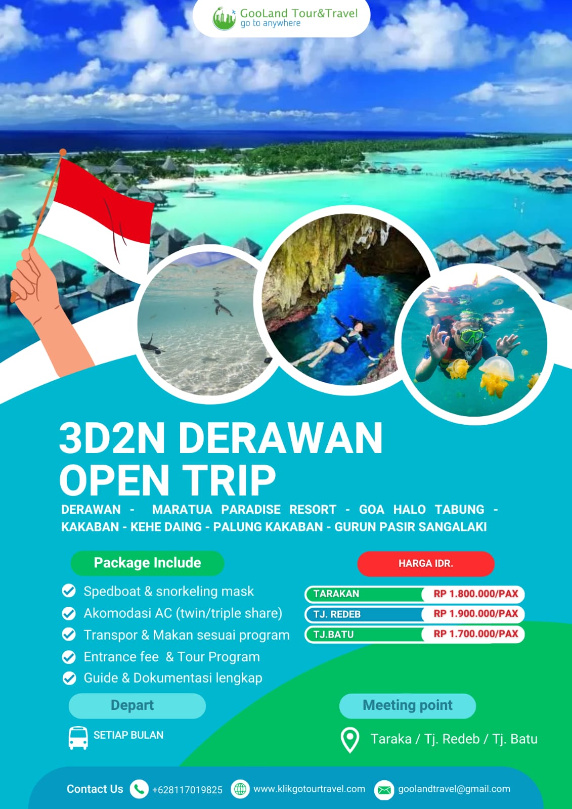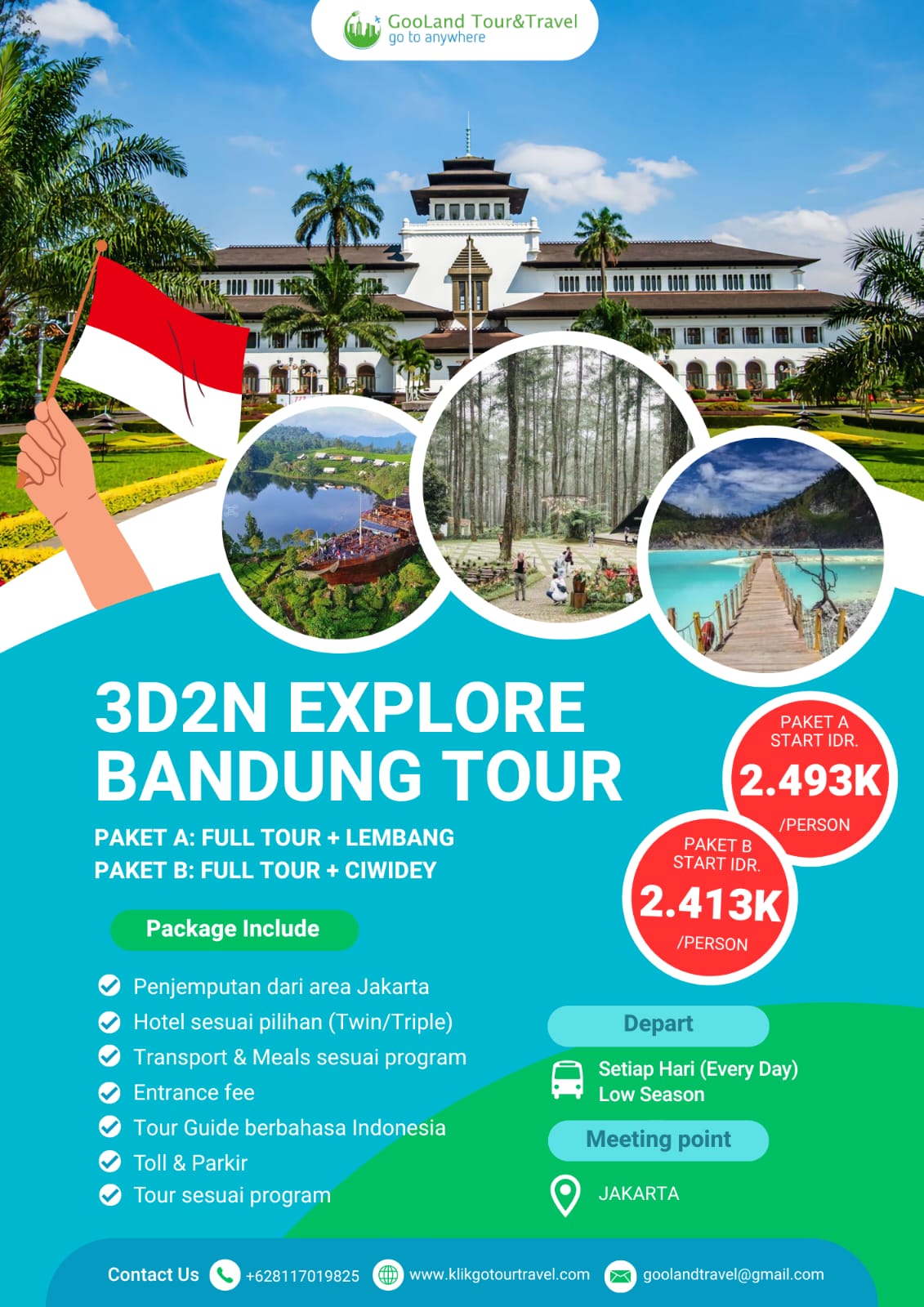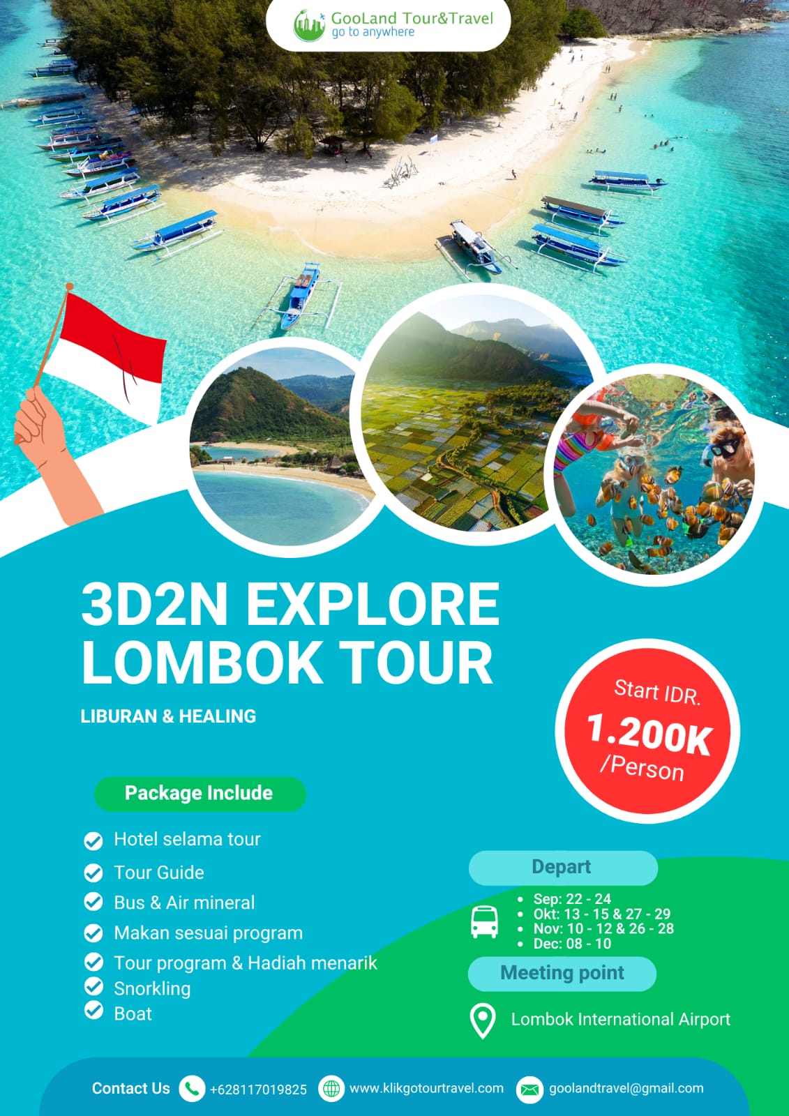 Nikmati perjalanan ke berbagai destinasi wisata terbaik di Indonesia dengan paket tour domestik dari Gooland Tour & Travel. Dapatkan pengalaman liburan seru dengan harga terjangkau dan fasilitas lengkap.