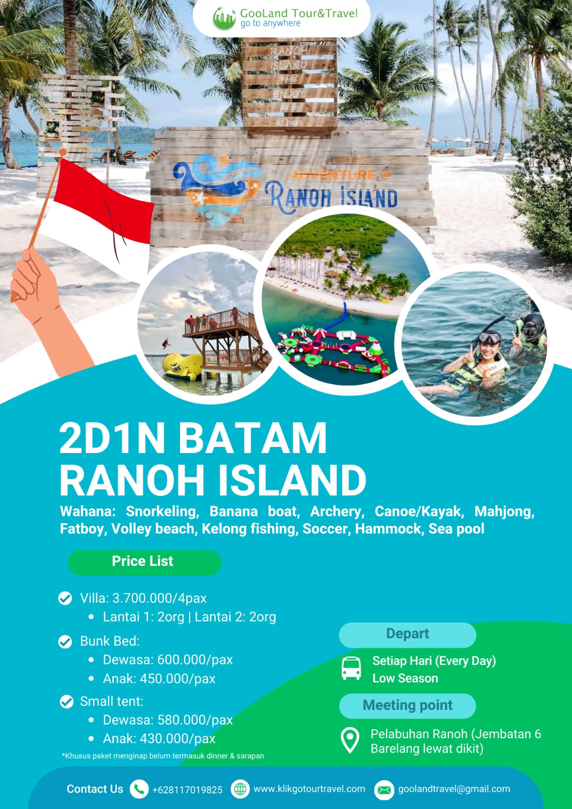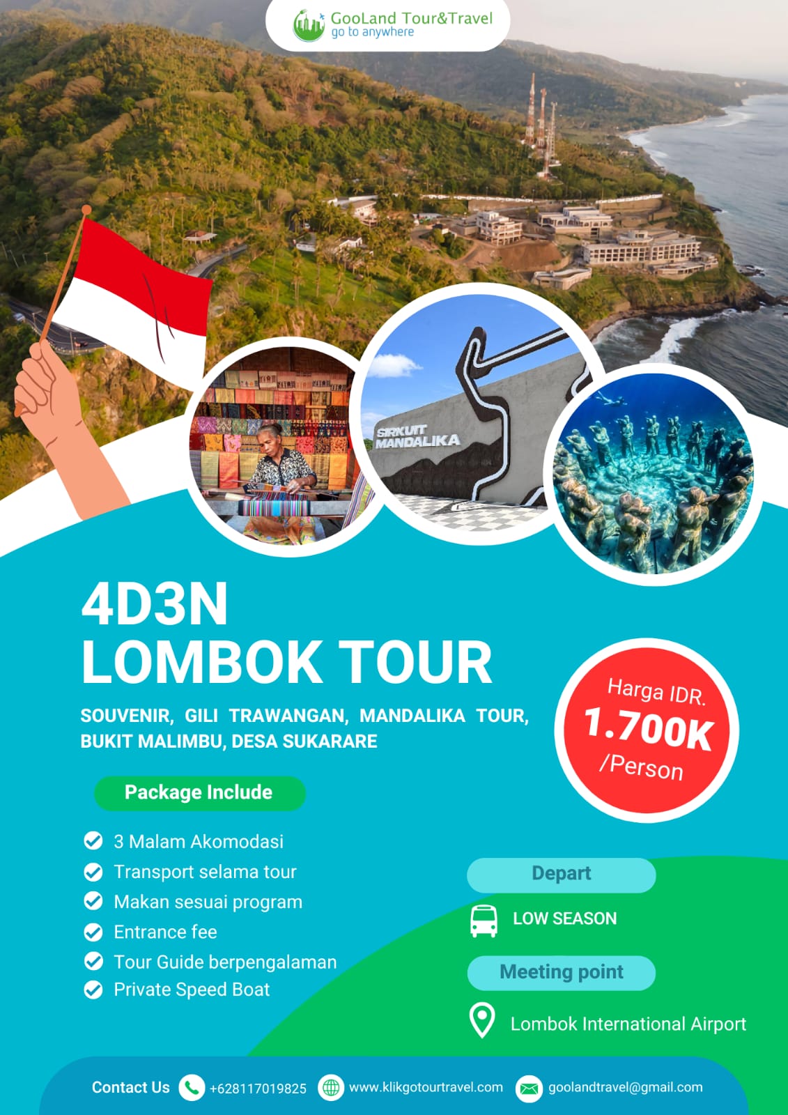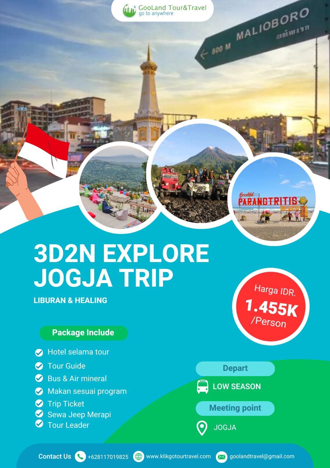 Nikmati perjalanan ke berbagai destinasi wisata terbaik di Indonesia dengan paket tour domestik dari Gooland Tour & Travel. Dapatkan pengalaman liburan seru dengan harga terjangkau dan fasilitas lengkap.